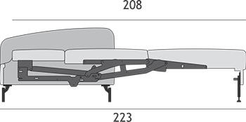 La larghezza dei lati è opzionale. Quando il materasso è esteso, i cuscini dello schienale vengono inseriti nello spazio che si crea quando esso viene estratto. Basta posizionare un cuscino per la testa sopra il cuscino inserito per avere un materasso perfetto per dormire.